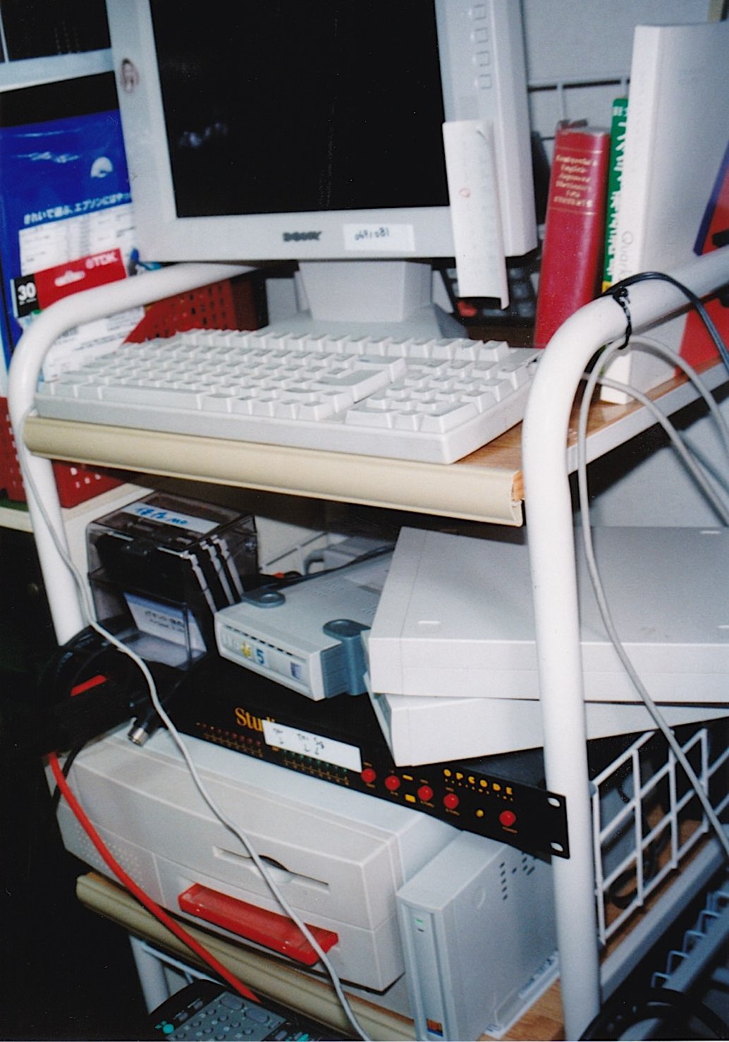 ちょうど今作業しております、2001年頃の私の家の仕事場の様子であります・・・これはメインの作業場では無く、脇にあるサブの吹き溜り=物置き状態です、、、それでもMacだらけ、、え?これMacなんですか?という方がほとんどでしょうね?