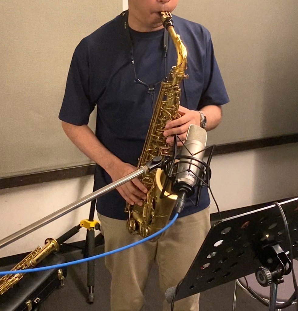 初参戦のSAXご担当のOさんの録音風景になります。